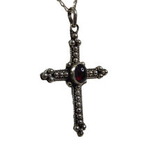 Offered for sale is this beautiful vintage 20th Century sterling silver and gemstone crucifix, most likely Italian in origin and dating from the 1960’s to 1980’s. Despite research the maker is unknown. Hallmarked 925, total weight 8grams (including sterling silver chain).