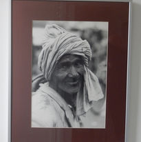 The stunning image depicts an Indian or Nepali man, head swathed in cloth. And in spite of what externally appears a life lived hard, there is a joyous twinkle in his eyes and lightness of spirit eminating. This photograph will inspire and engage in any home.