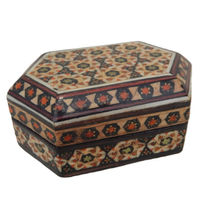 The elegant design features an elongated hexagonal form in two parts, all exterior surfaces having intricate khatam inlay applied.