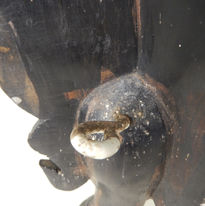 In a nice level of detail (unlike more modern examples which are very rudimentary), the carver has captured the Buddha seated in Lotus meditation pose with eyes closed and hands clasped together in the Uttarabodhi Mudra (symbolising perfection/connection with a supreme power). Particular attention has been paid to the expression of the Buddha - having an engaging humanist quality.