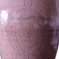 Created utilising earth tones with similar textured impression-work as found in Bitossi pieces, this falls into the 'tribal pattern' style.