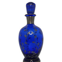 What stands this piece out from other examples is it demonstrates an excellent example of Japanese ‘Wabi Sabi’ repair practice, as at some point in its early history the initial stopper has become damaged. Given it would have been very expensive to replace, rather than throw the decanter away its owner had a replacement top riveted to the original stopper base (which fits and nips up well, so is not a ‘marriage’ pairing). The riveting work has involved three pins and a custom metal collar being formed. A fascinating, unique example of a long-forgotten tradesperson’s skill - the result is deeply interesting from an aesthetic and social history perspective.
