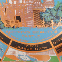 Offered for sale is this vintage 20th Century American-made printed and gilt fluted glass Disneyland souvenir plate, most likely dating from the 1960-70’s. There are two recorded styles of this souvenir plate, this being the earlier version.