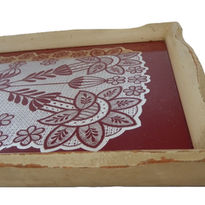 Offered for sale is this vintage 20th Century printed-mirror serving tray, most likely dating from the 1950-60’s. Whilst the printed red design is in a ‘Scandi’ style, despite intensive research am unable to attribute a country of origin. And I’ve never seen another like this!