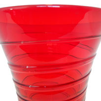 Vintage 20th Century English Whitefriars Art Glass ruby spiral vase by Barnaby Powell