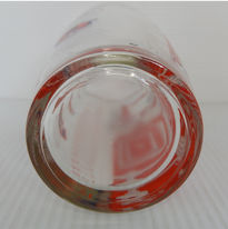 In stunning Cherry Red glass with clear rim, the craftsperson has skilfully formed a wonderfully decorative (as well as practical) unique piece – you can see the swirls of cooled molten glass formed whilst being spun out. Trapped air bubbles also reflect this is a genuine handmade and not moulded piece.