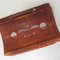 Offered for sale is this vintage 20th Century leather document briefcase, most likely Australian in origin and dating from the 1950’s. Embossed in gold with ‘K.J.B’ lettering, so may have belonged to a dyslexic (and not very good at hiding themselves) KGB spy.