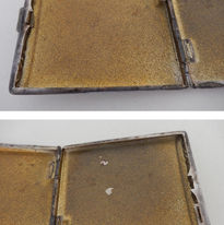 In good original condition. Opens and closes correctly. There is patination and wear to the metal, as expected from a genuine vintage item and not modern reproduction. The two internal straps are not present but could easily be reproduced.