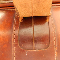 In very good original condition. There is patination to the leather and hardware from use, appropriate for this being a proper vintage item and not modern reproduction.