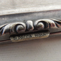 Offered for sale is this vintage 20th Century German Art Deco cast and engine-turned Alpacca metal cigarette holder, estimated as dating from the 1930’s. Despite research, the manufacturer is unknown. Hallmarked ‘Alpacca HOKA’ on the locking clasp.