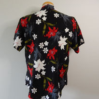 With its stylised hibiscus pattern, this is a fun and well-constructed garment with nice detailing such as coconut buttons.