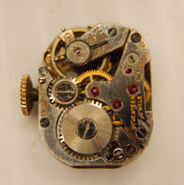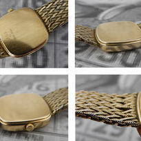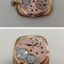 The womens watch (momement Cal.1375) has worked without issue since new battery and keeps good time. There is some light wear to the case and mesh bracelet. The face has some small dots and two bracelet links will require repair (as pictured).