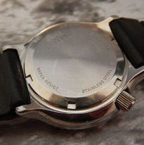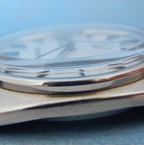 There is some very light patination to the outer bezel (which the price takes into account) but the crystal has no cracks and is clear. The caseback has no ugly marks as often found on many vintage watches. As the service history of the watch in unknown, it is recommended this be arranged by the next owner.