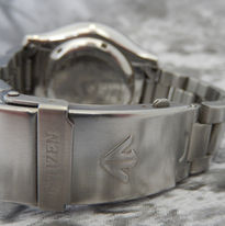 The design features a stunning silver sunburst dial with attractive ‘sword’ style hands that match nicely with the angled indices. The movement takes a good wind, runs from first shake and keeps good time over 24 hours. Features four complications that all work correctly: day (with English and Kanji), date, push-crown date adjuster and day-forward. The case has not been polished and retains its factory lines. The original band features an extender, and fits nicely on my 19cm wrist (as pictured).