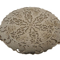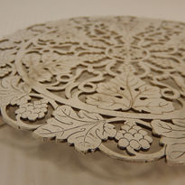 The charming design features a ruffled edge with central boss of fruiting grapes and canes supported on a fine rope-twist border.
