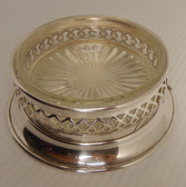 Offered for sale is this antique/vintage 20th Century silverplate wine coaster with glass liner, most likely English in origin and dating from the 1920’s to 1930’s. Hallmarked ‘EPNS A1’.
