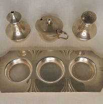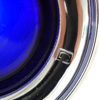 The plating is in very good condition overall, with one very small area of verdigris (as pictured). The glass liner has no chips or cracking.