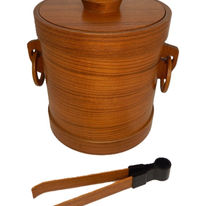 Vintage 20th Cent bentwood Teak ice bucket and tongs