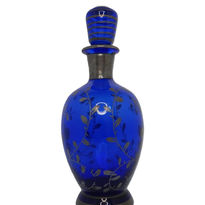 Vintage 20th Century Italian Venetian cobalt blue decanter with silver gilt decoration