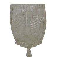 A weighty piece both in the literal sense and from a design perspective, with strong lines and unusual broadening neck. You can see where the maker has made their forming decisions – the trapped airbubbles add to its hand-made quality. Heavy and feels good in the hand.