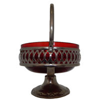 Antique/Vintage 20th Century English silverplate cranberry glass bonbon dish