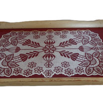 Offered for sale is this vintage 20th Century printed-mirror serving tray, most likely dating from the 1950-60’s. Whilst the printed red design is in a ‘Scandi’ style, despite intensive research am unable to attribute a country of origin. And I’ve never seen another like this!