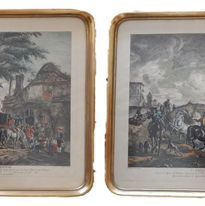 2 x Antique 18th Century (1747 & 1749) original French hand-coloured etchings