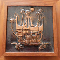 Vintage 20th Century original Indonesian Rumah Gadang copperart boho retro chic