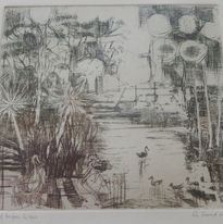 Vintage 20th Century original Australian copperplate etching by R David Hill