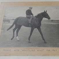 Offered for sale is this vintage 20th Century original press photograph, most likely of American thoroughbred racehorse ‘Whistling Wind’ and Australian jockey Arthur ‘Scobie’ Beasley, dating from February 1947. Whistling Wind is registered as being born 1 January 1943 (a four-year old when this photo was taken) and reported as being shipped to England for the 1947 race season. Arthur is known to have traveled constantly from Australia to the UK to compete and given his success adds weight to the attribution (however further information may clarify this). The horse rug is marked ‘HDP’ so this may assist identification of the horse stud.