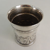 The attractive design is a high-quality reproduction of an original American-made (or possibly English) silver beaker that was found in New England and is now held in The Met’s collection. It a features a repeated row of stylised Icanthus leaves around the base; above this sits a raised band with hand-punched floral design.