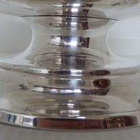 The plating is in very good condition overall, with one very small area of verdigris (as pictured). The glass liner has no chips or cracking.