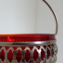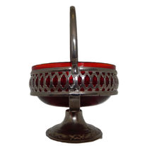 Offered for sale is this antique/vintage 20th Century English silverplate and cranberry glass bon-bon/sweetmeats dish, most likely dating from 1921 to the 1960's. Stamped ‘Made in England’ but no discernable makers mark.