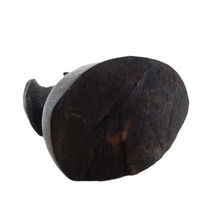 In a powerful Minimalist style the carver has rendered a strong, dignified image of a Mangbetu woman with traditional Edamburu/Tumburu hairstyle (the facial scarification depicted may further identify her as coming from the Uele District of today’s northern Congo). Popular during the 19th and early-20th Century as a symbol of status and health, Edamburu/Tumburu is still used today and referenced in popular culture (such as in Marvel’s ‘Wakanda’ nation).