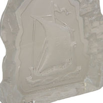 Vintage 20th Century Swedish art glass paperweight/sculpture of viking longship by NYBRO