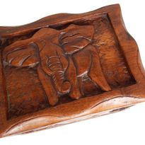 Vintage 20th Century African hand-carved hardwood casket with five sides depicting wildlife