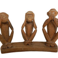 Each monkey has been individually shaped before being mounted onto a curved base. Originating from 15th Century Japanese folklore, they singly represent: Mizaru (covering his eyes, and who sees no evil), Kikazaru (covering his ears, who hears no evil) and lastly Iwazaru (covering his mouth, who speaks no evil). They have a nice level of detail and their own unique expressions.