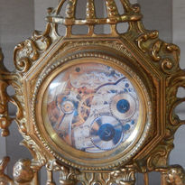 The case itself most likely dates from the early 20th Century, and features a blend of neo-classical and gothic elements – cherubs, garlands, pierced galleries, columns, torches and a floral finial.
