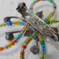 The fun and happy design features a stylised butterfly formed from multi-coloured beads and green paste stones. The quality of stones and construction method is high - as importantly the body has been hand-soldered (and not simply cast).